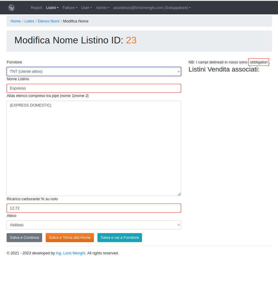LorisMenghiSpedizioni\Entity\ListinoVendita