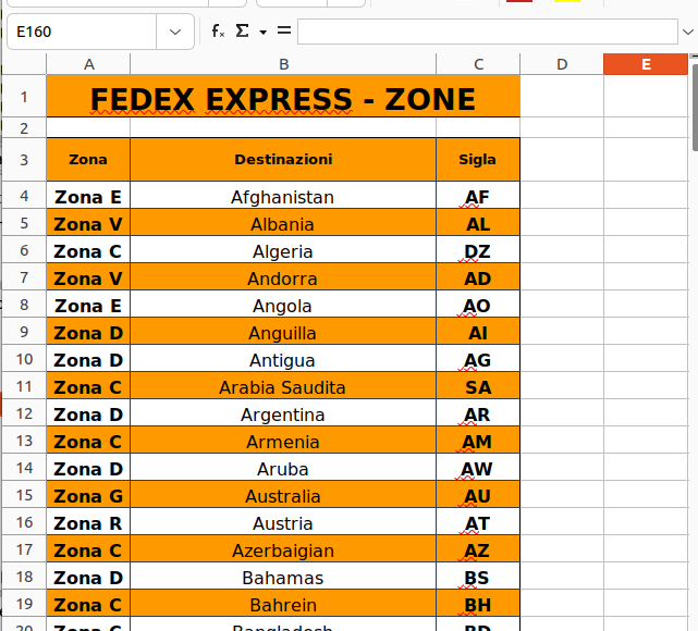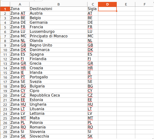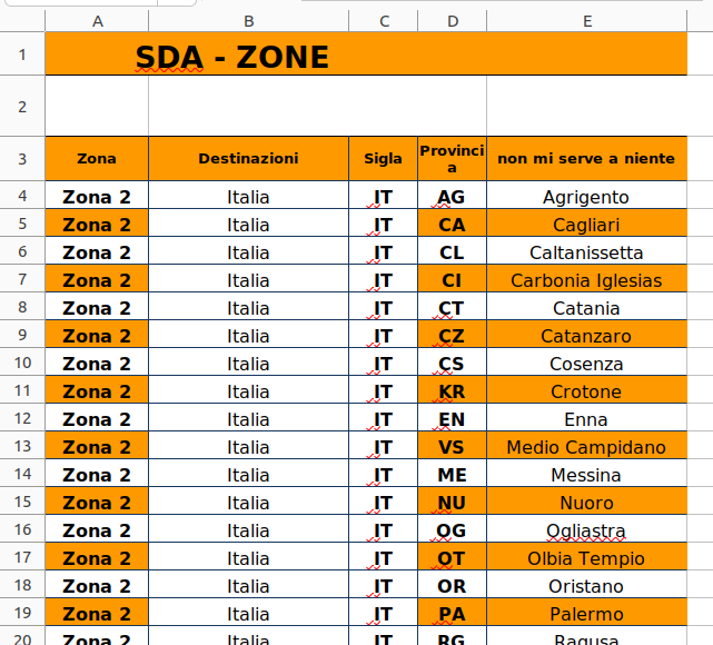 Esempi file zone listino: